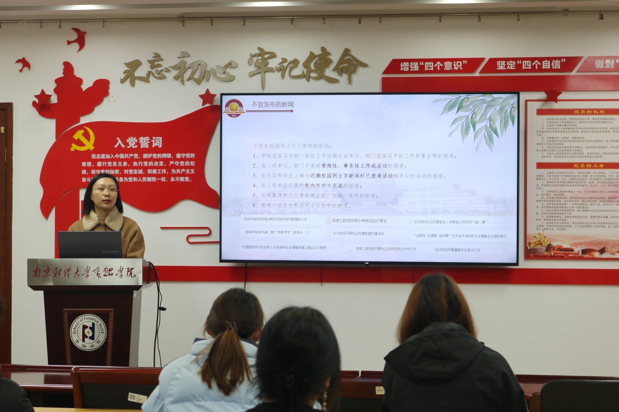 为进一步加强学院学生宣传工作队伍建设,提升学生骨干的新闻素养与写作能力,12月7日下午,“金小鳄”团干赋能训练营新闻写作专题培训于德经楼507教室成功举办。本次培训邀请南京财经大学党委宣传部施卫娟老师担任主讲,学院各学生组织相关负责同学、团干部及对新闻写作感兴趣的同学参加了本次培训。培训伊始,施老师以“什么是新闻”为切入点,深入浅出地阐述了新闻稿的基本特征与价值定位。在内宣稿件部分,施老师深入剖析...