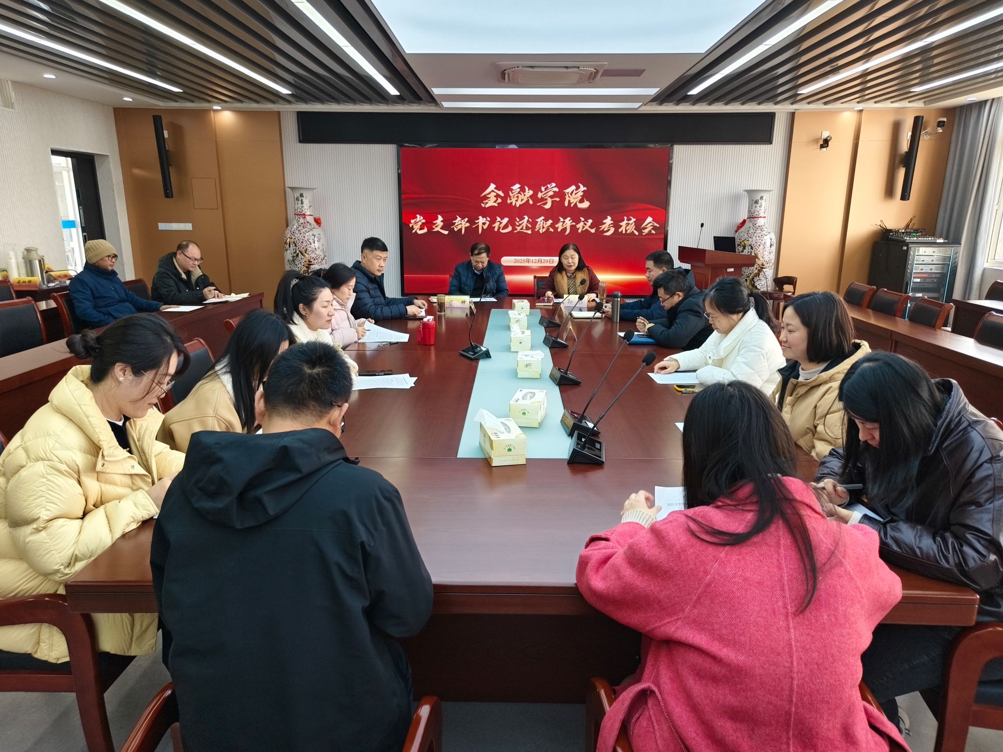 12月24日下午,金融学院在南京财经大学仙林校区德经楼508会议室召开2025年度教职工大会,学院87位教职工参加了会议,10位教职工因病、因事请假。会议由学院党委副书记张士青主持。院长宣烨向全体教职工作了2025年度学院工作报告社会服务报告,宣烨同志强调学院取得的每一项成绩,离不开上级部门的正确领导与指导,离不开学院全体师生的共同努力、团结拼搏与无私奉献。他代表学院领导班子,向大家对学院领导班子工作的信任、理解...