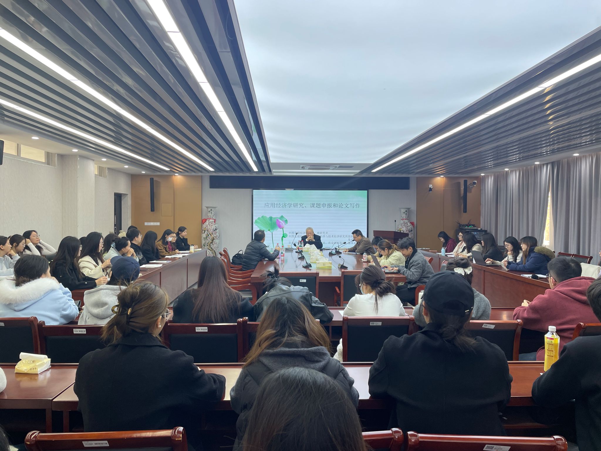 讲座伊始,姜长云研究员从应用经济学的学科本质切入,结合当前我国经济发展的新形势与新任务,阐释了应用经济学研究“立足实践、服务决策”的核心定位。在课题申报环节,姜长云研究员针对申报人普遍存在的“选题不准、论证不深、亮点不突出”等痛点,提出了“三维选题法”——既要契合国家战略与政策导向,又要立足自身研究专长,更要兼顾研究问题的实践价值与创新空间。论文写作部分,姜长云研究员聚焦“逻辑构建”与“细节打磨”两大核心。他指出,一篇高质量的应用经济学论文,需具备“清晰的研究问题、严谨的分析框架、可靠的实证证据、深刻的政策启示”四大特质。他结合自身审稿经验,列举了论文写作中常见的逻辑漏洞、数据处理误区及学术规范问题,并分享了文献检索、数据挖掘、观点提炼的实用技巧,尤其强调了“小切口、深分析”在论文写作中的重要性。讲座后,姜研究员对师生提出的疑问进行了一对一的解答。